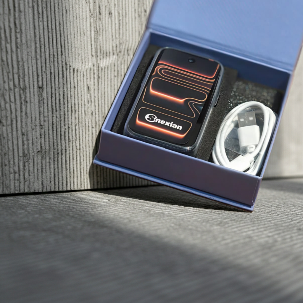 The Snexian Bold T170 is a premium 4G feature phone with a smartphone-style design, 3GB RAM, 16GB storage, dual rear cameras, VoLTE support, and long battery backup — Made in India with top-tier quality. Looks like a iphone 16 pro.